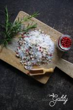Sól ziołowa z rozmarynem 208tworząc klasyczne mieszanki. Próbuję też kombinować z nowymi połączeniami i aromatami. Dziś chciałam się podzielić z Wami przepisem na sól ziołową z rozmarynem. Będzie doskonałym dodatkiem do grillowanych mięs, ryb, a także różnego rodzaju warzyw, czyli wszędzie tam gdzie będzie pasował rozmaryn. Sól ziołowa z rozmarynem Czas przygotowania: 60 minut Składniki: 4 łyżki gruboziarnistej soli 1 łyżeczka czerwonego pieprzu(...)Sól utartą w moździerzu wysypujemy na pergamin lub papier śniadaniowy, dodajemy do niej pozostałą sól i dokładnie mieszamy, najlepiej palcami. Papier z solą kładziemy na blachę do pieczenia, którą wsuwamy do piekarnika. Przyprawę suszymy w piekarniku nagrzanym do 50-60 stopni przy lekko uchylonych drzwiczkach. Gdy przyprawa będzie sucha, przesypujemy ją do młynka lub szczelnie zamkniętego słoiczka
