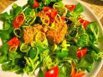 Smażony tempeh 221jest naturalnym probiotykiem i dobrym białkowym składnikiem diety odchudzającej). Co warto jeszcze dodać? Jest bezglutenowy, całkowicie roślinny, pełnowartościowy i nieprzetworzony. Można z niego przyrządzić wiele dań (np. kotlety, przekąski, kanapki i sałatki). Można go grillować, smażyć, dusić i zamrażać. Łatwo komponuje się z wieloma przyprawami i marynatami. Przykładowe przepisy dostępne tutaj. Informacje pochodzą ze strony http://tempehservice.com/. Smażony tempeh