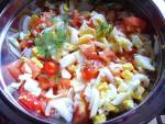 Pomidor, jajko, cebulka. Szybka smaczna sałatka do obiadu i na grilla. 442Sałatka w sam raz na lato i grilla. Smaczna, szybka i tania. Poza sezonem grillowym pasuje świetnie na wszelkie imprezy do mięs i wędlin. A