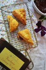 Szkockie Scones z powidłami śliwkowymi 206studzimy na kratce kuchennej, wierzch można posypać cukrem pudrem. Jeśli do ciasta nie dodamy cukru, a powidła zastąpimy serem żółtym lub pleśniowym wyjdą smaczne przekąski idealne do sałatek. Zainspirowana ,, Kuchnią z zielonego Wzgórza