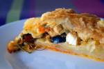 Kurczak z warzywami zawijany w ciasto francuskie 282Jeżeli akurat macie za dużo piersi z kurczaka do sałatki i arkusz ciasta francuskiego w lodówce to dobrze się składa bo możecie wyczarować fajną przekąskę. Ja do tego zawijasa stosuję sos paprykowy mojej mamy, ale równie dobrze można ciasto francuskie posmarować np kutchupem. Składniki: Arkusz ciasta francuskiego pierś z kurczaka cebula przyprawa gyros garść czarnych oliwek garść rukoli pół papryki