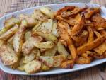 Pieczone bataty/ziemniaki 675Pyszne pieczone ziemniaczki i słodkie bataty do doskonały dodatek do mięska do obiadu. Wyśmienicie smakują również jako przekąska z dodatkiem ulubionego dipu. Można doprawić ulubionymi przyprawami, ja użyłam tymianku i mieszanki do sałatek z młynka. składniki: 1,5-2 kg batatów i/lub ziemniaków tymianek przyprawa do sałatek, u mnie młynek Prymat olej do skropienia Bataty/ziemniaki obrać ze skórki. Następnie obrane