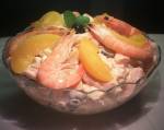 Sałatka z krewetek 260Sałatka z krewetek. I tych najmniejszych, bo koktajlowych i tych większych. W połączeniu ze słodką brzoskwinią i słonawymi oliwkami ta sałatka z krewetek tworzy prawdziwy koktajl