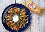 Śródziemnomorska sałatka makaronowa z kurczakiem i duszonymi warzywami 263Kolejna szybka sałatka makaronowa z sezonowymi warzywami typu "to co mamy w lodówce". U mnie znalazła się dynia, niepodzielnie królująca każdej jesieni, czerwona papryka, szalotka i