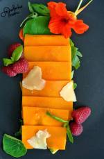 Carpaccio z dyni z serem Bursztyn 297Dynia piżmowa odmiany Muscade de Provence - piękna prawda? Ma okrągłe, płaskie owoce, z charakterystycznym prążkowaniem. Miąższ, którym nas obdarowuje jest słodki i pomarańczowy. Dziś dynia