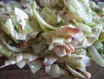 Surówka z sałaty lodowej 467Prosta surówka z sałaty lodowej. Wystarczy główka sałaty, średniej wielkości cebula, 2 jabłka i majonez. Sałatę traktujemy trochę inaczej niż zazwyczaj tzn. zamiast rwać rękami na