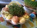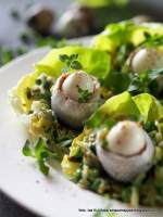 Moskaliki z jajkiem na zielonej sałatce z gwiazdnica 212Oto śledzik . Śledzik z jajeczkiem przepiórczym usadzony na zielonej sałatce, którą zrobiłam z zielonych warzyw i świeżo zebranej w łęgach gwiazdnicy. Niby nic a na spotkaniu
