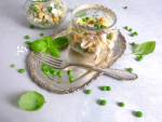 Sałatka jajeczna z groszkiem 170Z kilku prostych składników, zaledwie w kilka chwil można otrzymać pyszną sałatkę. Jeśli jajka zetrzemy na tarce o grubych oczkach otrzymamy smaczną pastę na kanapki