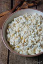 Sałatka z jajkami, porem, serem żółtym i kukurydzą 157I selerem naciowym. Zupełnie zwyczajna, bez udziwnień. Sprawdzi się świetnie do pieczonych wędlin na święta, będzie fajna na Sylwestra i inne imprezy mniej lub bardziej rodzinne