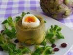 Jajka w sercach karczochów 224Zapraszam na lekką i bardzo zdrową przystawkę z jajek na miekko w sercach karczochów. Danie w sam raz na wielkanocne poniedzialkowe śniadanie. Karczochy pełne witamin i
