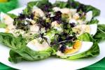Sałatka z jajkiem i kiełkami na sałacie z pikantnym sosem 234Dziś pora na kolejne wyzwanie wspólnego gotowania, tym razem wyzwanie "3po3", a jego głównymi składnikami miała być sałata, jajko i kiełki. Mówiąc szczerze długo zastanawiałam się