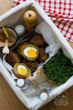 Falafele a'la jajka po szkocku (wegetariańskie jajka po szkocku) 221Słyszeliście o jajkach po szkocku? Jest to uwielbiana przez Brytyjczyków barowa przekąska, klops z jajka owiniętego mielonym mięsem. Dziś mam dla Was wegetariański wariant tego przysmaku