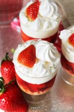Deserki Truskawkowa Chmurka 65Te deserki Truskawkowa Chmurka są przepiękne i smakują naprawdę pysznie! To połączenie truskawek, galaretki, aksamitnego kremu i chrupiących mini bezików. Deser jest bardzo prosty w przygotowaniu