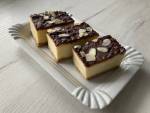 sernik na zimno z marcepanem i galaretką... 183galaretka truskawkowa 1 opakowanie, galaretka agrestowa 1 opakowanie wsypać sernik z opakowania, wlać zimne mleko, dodać serek waniliowy homogenizowany i mikserem wyrabiać wg opisu na opakowaniu marcepan w czekoladzie pokroić na kawałeczki i dodać do sernika, mikserem połączyć składniki forma 30x15 cm wyłożona papierem do pieczenia, na dnie ułożyć herbatniki i wyłożyć połowę masy sernikowej na wierzchu ułożyć