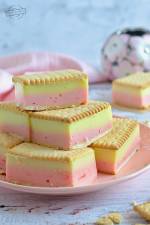 Ciasto pastelowe z serka homogenizowanego 3013Błyskawiczny deser bez pieczenia, utrzymany w pastelowej kolorystyce. Przepyszny. Świetny dla dzieci. Zarówno smakowo, jak i do trenowania pod okiem dorosłych (przygotowanie galaretki) swoich kulinarnych umiejętności