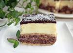sernik gotowany czarno-biały... 207Składniki: margaryna 250 gram, twaróg śmietankowy tłusty 1 kg, jajka 5 sztuk "L", cukier 1 szklanka, cukier wanilinowy 1 opakowanie, mleko 2 szklanki, budyń waniliowy 2 opakowania, herbatniki 200 gram, kakao 3 łyżki, czekolada z orzechami 100 gram, posypka kolorowa - ile potrzeba twaróg śmietankowy w misce blenderem zmiksować (jeśli mamy twaróg o zwartej masie to trzeba zmielić w maszynce(...)herbatniki, wyłożyć połowę masy serowej, nakryć herbatnikami do reszty masy serowej wsypać kakao i wymieszać wszystko, wyłożyć do formy na białą masę, nakryć herbatnikami, schować do lodówki do stężenia, czekoladę roztopić w kąpieli wodnej z łyżką śmietany i wylać na sernik, posypać kolorową posypką, najlepiej chłodzić całą noc - sernik gotowany jest również pysznym sernikiem