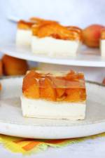Ciasto z kaszą manną i budyniem na herbatnikach (z galaretką i morelami) 154Przepis na pyszne ciasto z kaszą manną i budyniem na herbatnikach z galaretką i morelami. Ciasto jest bardzo proste w przygotowaniu, a wszystkie składniki idealnie ze