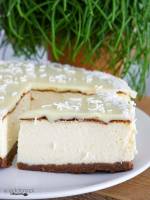 Kremowy sernik z polewą z białej czekolady 97Sernik z polewą z białej czekolady to jeden z najpyszniejszych serników, jakie znam. Jest niesamowicie delikatny, równiutki i rewelacyjny w smaku. Jego delikatność podkreśla polewa z