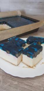 Sernik na zimno z borówkami 119Przepis na pyszny sernik na zimno z galaretką i borówkami. Łatwy i lekki deser na gorące dni. Składniki 1 kg serka w wiaderku 1 op. herbatników