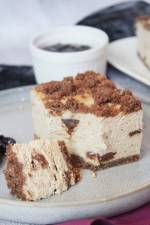 Sernik z powidłami i kakaowym ciastem 146Przepis na sernik na kakaowym spodzie i z pyszną kruszonką. Główna część tego prostego ciasta to kremowa masa serowa, którą wzbogaciłam powidłami śliwkowymi. Serniczek można porównać