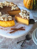 Sernik dyniowy z kajmakiem 132Sernik dyniowy przygotowany na korzennym, a'la biszkoptowym spodzie z masą na bazie serka mascarpone i jogurtu greckiego z dodatkiem puree z dyni. Na wierzchu sernika