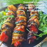 Szaszłyki z boczkiem i warzywami pieczone w Air Fryer 190Szaszłyki z boczkiem i warzywami pieczone w Air Fryer . Szaszłyki, czyli pieczone mięso i warzywa nadziane na patyczki, to doskonała propozycja na kolorowy i pyszny obiad