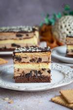 Ciasto „Pijana śliwka” 330Ciasto warstwowe, składające się z jasnego i kakaowego biszkoptu przełożone powidłami śliwkowymi oraz czekoladową masą budyniową z dodatkiem suszonych śliwek kalifornijskich moczonych przez noc w rumie