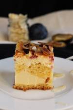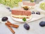 Sernik na zimno z musem śliwkowym 113Przyjęło się, że jak deser ze śliwkami to musi być pieczony, a ja tym razem wymyśliłam sobie coś do czego piekarnik potrzebny nie jest. Taki dwuwarstwowy