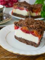 Śmietanowiec ze śliwkami w kakaowym cieście 110To ciasto zawsze smakuje, nie tylko w wersji ze śliwkami. Jakiś czas temu robiłam bardzo podobne, ale z brzoskwiniami i bez kakao. Zapraszam na bardziej