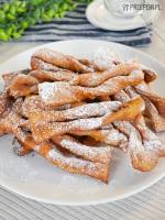 Faworki 161Faworki, zwane także jako chruściki to jedna z najpopularniejszych przekąsek na Tłusty Czwartek, zaraz po tradycyjnych pączkach. Przygotowane są z mąki, żółtek oraz kwaśnej