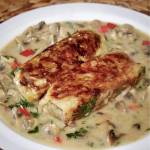 Pieczona pierś z kurczaka w sosie kokosowym z pieczarkami i szpinakiem 218himalajskiej + 1/3 łyżeczki do sosu 1/2 łyżeczki świeżo zmielonego pieprzu + 1/4 łyżeczki do sosu 1 łyżka smalcu gęsiego lub oleju kokosowego 8 -10 suszonych pomidorów z oleju 200g pieczarek brązowych 1 łyżka skrobi kukurydzianej + 2 łyżki wody 150ml płynnego mleka kokosowego 400ml domowego rosołu 3 ząbki czosnku 1 łyżka soku z cytryny 70g szpinaku (2 garści) 2 łyżeczki posiekanej kolendry(...)Mieszam ze sobą suszoną tapiokę, paprykę, czosnek, 1 łyżeczkę soli himalajskiej,1/2 łyżeczki pieprzu i w mieszance obtaczam kurczaka. 4 Na patelni na średnim ogniu rozgrzewam 1 łyżkę smalcu lub oleju kokosowego, podsmażam kurczaka 3 minuty z każdej strony. 5 Układam podsmażone piersi w naczyniu żaroodpornym. 6 Pomidory suszone kroję w paski. 7 Pieczarki myję, w razie potrzeby obieram