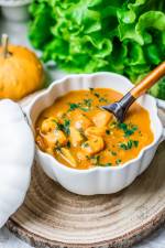 Gulasz wieprzowy z dynią 109Pora na przepis na pyszny, rozgrzewający, jesienny gulasz. Składniki na 2 osoby: 400 ml wody 250 g szynki wieprzowej około 200 - 250 g pokrojonej w kostkę