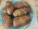 Zrazy-roladki z karkówki 66SKŁADNIKI I PRZYPRAWY I MATERIAŁY POMOCNICZE -karkówka plastry 2-2,5 cm -cebula -papryka -ser żółty -ulubione przyprawy -wykałaczki -smalec WYKONANIE Kupioną karkówkę