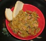 na szybko pyszny, prosty bigos... 322Składniki: kapusta kiszona 1,5 kg, woda 3 szklanki, kostka rosołowa grzybowa 2 sztuki, ziele angielskie 4 sztuki, liście laurowe 2 sztuki, cząber 5 sztuk smalec