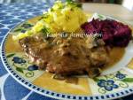 Schab w sosie pieczarkowym 116Pyszne mięsko w sosie to zawsze udany obiad. Takie w sosie z pieczarkami robię rzadko, bo mąż nie lubi ani grzybów ani pieczarek, ale robię