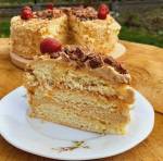 Tort jojo 164Jest to kolejny odkurzony ze starego zeszytu przepis. Tort składa się z trzech półkruchych blatów, przekładanych dżemem i kremem kawowym. W oryginalnym przepisie występuje