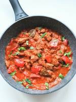 Gulasz wołowy w węgierskim stylu. 63Ten gulasz to jedno z tych dań, które lubię za prostotę, konkret i niespieszne gotowanie. Mięso dusi się w przyprawach, pomidorach i cebuli