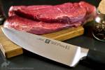 Stek (befsztyk) 335Dobry stek to niebo w gębie godne prawdziwego jaskiniowca, bo to w końcu kawał mięcha potraktowany przez moment ogniem, a mimo to najczęściej surowy w środku. Tylu ludzi zajada mięso, a mało kto wie, czym się różni stek od befsztyku. Stek to potrawa z kawałka mięsa krojonego w poprzek włókien mięśniowych, który się smaży, piecze albo grilluje . Stek można zrobić(...)każdego rodzaju mięsa, nawet z ryby. Befsztyk z kolei to stek z wołowiny. Jak surowe mięso jest ci obce, to zacznij od steków wysmażonych i staraj się smażyć je coraz krócej, aż za którymś razem osiągniesz średnio krwisty i będziesz w stanie powiedzieć, jakie najbardziej lubisz. Na zdjęciu powyżej średnio wysmażone steki – w środku z dziczyzny (ciemniejsze mięso