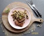 Bryzol z pieczarkami i cebulą 239Bryzol lub stek jak kto woli, to kawałek polędwicy wołowej obsmażony i podany z pieczarkami i cebulką. Pysznie, szybko i nie ma się tutaj co nie
