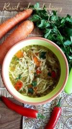 Rosół wołowo-drobiowy z chili 376Esencjonalny, mięsny i tradycyjny rosół z nutką pikanterii dzięki dodaniu chili. Podobny do rosołu mojej Mamy – z kilkoma talarkami chili. Jest wspaniałą bazą do dalszych