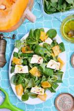 Sałatka z roszponką, dynią i camembertem 180Dynia na surowo jest bardzo smaczna i wcale nie trzeba jej wcześniej marynować np. w soku z cytryny, aby zmiękła. Do sałatki użyłam odmiany, która najlepiej