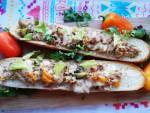 ZAPIEKANKA Z TUŃCZYKIEM 235SKŁADNIKI: 🍕🍕🍕 2 bagietki ok 30 cm Mix sałat Farsz 🍕🍕🍕🍕 1 puszka tuńczyka stek w oleju 2 mini papryki lub 1 duża 3 ogórki konserwowe 10