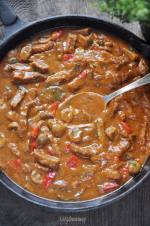 GULASZ Z INDYKA (JAK STROGONOW) 128Dziś zapraszam na drobiową wersję słynnego strogonowa, który w oryginale oczywiście przygotowyjemy z polędwicy wołowej. Mięso drobiowe (u mnie filet z indyka) to fajny zamiennik wołowiny