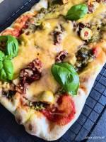 Gotowa pinsa z pieczarkami 48Pinsa bez mięsa Ten owalny, a raczej prostokątny placek drożdżowy to super sprawa na szybki posiłek. U mnie pinsa z pieczarkami, bez mięsa, szynki i zbędnych