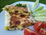 Zawsze głodna!Jest to moje ulubione danie kuchni meksykańskiej, tortilla kukurydziana z roztopionym serem. Tradycyjnie stosuje się ser typu Oaxaca, lecz równie dobry jest np. cheddar. Często do quesadilli dodaje się różne opcjonalne składniki – ziemniaki, grzyby, cuitlacoche , pokrojoną w paski paprykę jalapeño, kiełbaski chorizo itd. Na północy Meksyku używa się tortilli z pszenicy. Moja propozycja to kurczak, papryka najlepiej różnokolorowa, pieczarki(...)kukurydza... A oto składniki: na 2 porcje 2 piersi z kurczaka 1 opakowanie 4 tortilli kukurydzianych lub pszennych mała puszka słodkiej kukurydzy 1 papryka zółta, 1 czerwona 15 dkg pieczarek 1 marchewka 10 dkg sera typu cheddar lub edam sól oliwa z oliwek łyżka masła pieprz papryka słodka papryka ostra bazylia oregano przygotowanie : kurczaka myjemy, osuszamy, kroimy w paseczki szerokości