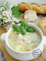 Kremowa zupa brokułowa 206Delikatna w smaku kremowa zupa z brokułami na filecie z kurczaka, zaletą jest łatwość przygotowania idealna propozycja na szybki posiłek, również dla dzieci. Można ją też zmiksować na krem. Składniki: 1 filet z kurczaka 1 świeży brokuł 5-6 ziemniaków 1 duża marchewka ½ szklanki makaronu muszelki 3 łyżki klarowanego masła 1 szklanka mleka ½ łyżeczki cukru do smaku gałka muszkatołowa(...)przygotowania: Ziemniaki i marchewkę obieramy, myjemy, kroimy w kostkę. W garnku rozpuszczamy klarowane masło, dodajemy warzywa i przesmażamy 5 minut, mieszając. Brokuł dzielimy na mniejsze różyczki, dodajemy do podsmażonych warzyw, dodajemy pokrojonego na grubsze kawałki fileta z kurczaka, zalewamy zimną wodą i gotujemy do miękkości. Około 25 minut. Na 10 minut przed końcem gotowania, dodajemy suchy makaron, doprawiamy