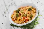 penne w sosie śmietanowym z kurczakiem i brokułami 498się szybko i stanowi sycący obiad. Filet z kurczaka z powodzeniem można zastąpić wędliną lub zrobić to danie jako bezmięsne. SKŁADNIKI makaron penne 1 pojedynczy filet z kurczaka 1 szt. brokułów 1 szt. cukinii 0,5 l śmietany kremówki 30% sól pieprz bazylia zioła prowansalskie PRZYGOTOWANIE Brokuły umyć i podzielić na różyczki. Do wrzącej i osolonej wody wrzucić(...)brokuły i gotować je ok. 4-6 min, aż będą al dente. Filet z kurczaka pokroić w kostkę i usmażyć, pod koniec doprawić pieprzem i solą. Cukinię przerobić na drobne kawałki i połączyć z filetem, całość smażyć 2-3 min. Kolejno dodać śmietanę, doprawić do smaku solą, pieprzem, bazylią i ziołami prowansalskimi. Gotować, aż sos zgęstnieje. Wszystko połączyć
