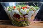 Sałatka makaronowa z brokułem i suszonymi pomidorami 270sałatka warstwowa polana sosem czosnkowym - naprawdę bardzo dobra! Składniki: 1,5 szklanki suchego kolorowego makaronu - u mnie kokardki 2/3 kostki sera typu feta 1 pojedyncza pierś z kurczaka + przyprawa gyros 1 mały brokuł 5-6 pomidorów suszonych Sos czosnkowy: 2 łyżki jogurtu naturalnego 1 łyżka majonezu szczypta cukru 1 ząbek czosnku zioła prowansalskie lub suszona bazylia Sposób wykonania: 1. Makaron(...)kostkę, pomidory drobniej pokroić. 5. Zrobić sos: majonez wymieszać z jogurtem, dodać zmiażdżony ząbek czosnku, zioła, szczytę cukru i wymieszać. 5. W salaterce ułożyć od dołu: makaron, kurczak, ser feta, brokuł, suszone pomidory. Przed podaniem polać sałatkę sosem czosnkowym. Smacznego
