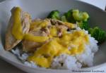 KURCZAK W BRZOSKWINIOWYM SOSIE 254Soczysty filet z kurczaka , polany pysznym sosem musztardowo-brzoskwiniowym autorstwa mojego brata ( wyszedł genialny ! ) w towarzystwie białego ryżu i chrupiących brokułów. SKŁADNIKI: Podwójna pierś z kurczaka Marynata: 1 łyżka sosu sojowego 1 łyżka oliwy z oliwek 1 łyżeczka curry 1 łyżeczka słodkiej papryki Sos: 400 g brzoskwiń z puszki 4 łyżeczki musztardy delikatesowej 50 ml oleju lnianego 2 łyżeczki(...)wstawiamy do lodówki na ok. 1 h lub na całą noc. 4. Kurczaka grillujemy na patelni lub gotujemy na parze. 5. Brzoskwinie odcedzamy i miksujemy na gładko z pozostałymi składnikami. 6. Podgrzewamy całość w garnku na małym ogniu mieszając. Proponuję podawać z chrupiącymi brokułami i ryżem J SMACZNEGO