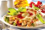 Lazania z kurczakiem 304beszamelowy: • 5 dag masła • 2 łyżki mąki • 1/2 l mleka • gałka muszkatołowa • sól • pieprz biały Nadzienie: • cebula • 2–3 ząbki czosnku • 25 dag brokułów • cukinia • 3 kolorowe papryki • 50 dag filetów z piersi kurczaka • 4 łyżki oliwy • puszka pomidorów • kostka bulionu warzywnego • 25 dag mozzarelli • bazylia • oregano • sól, pieprz Przygotowanie: 1. Zrobić sos: w rondelku zasmażyć na jasny kolor(...)czas mieszając, zagotować. Beszamel doprawić świeżo zmieloną gałką muszkatołową, solą i pieprzem. 2. Warzywa umyć, oczyścić.Cebulę i czosnek obrać, posiekać. Brokuły podzielić na różyczki. Cukinię pokroić na półplasterki, a paprykę w drobną kostkę. Filety z kurczaka opłukać, osuszyć, pokroić w kostkę i podsmażyć na oliwie razem z cebulą i czosnkiem. Dodać paprykę, brokuły i cukinię. Smażyć razem